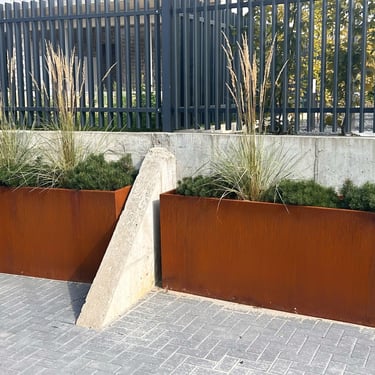 Corten steel planters are modern and contemporary, naturally blending into various environments - they complement both wood, glass, concrete, and other exterior materials. These planters practically require no maintenance. Rain will help create ever-changing beauty in your garden, and even the simplest planted vegetation will naturally and beautifully integrate into your created exterior.